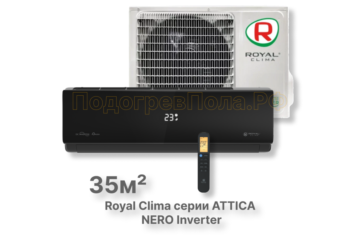В сплит-системах Royal Clima серии ATTICA NERO Inverter объединены самые современные инверторные технологии и изысканный дизайн. Внутренний блок, выполненный в интенсивном черном цвете, отлично впишется в любой интерьер от современного до классического и станет лаконичным акцентом в любой обстановке. Неоспоримым преимуществом серии является многоуровневая система очистки воздуха с помощью фильтров Silver Ion и Active Carbon а так же его ионизация. Многоступенчатый 5-ти скоростной вентилятор внутреннего блока позволяет выбрать максимально комфортные настройки скорости воздушного потока, а функция 3D AUTO AIR позволит равномерно распределить воздух по всему помещению или зафиксировать поток воздуха в одном необходимо направлении.